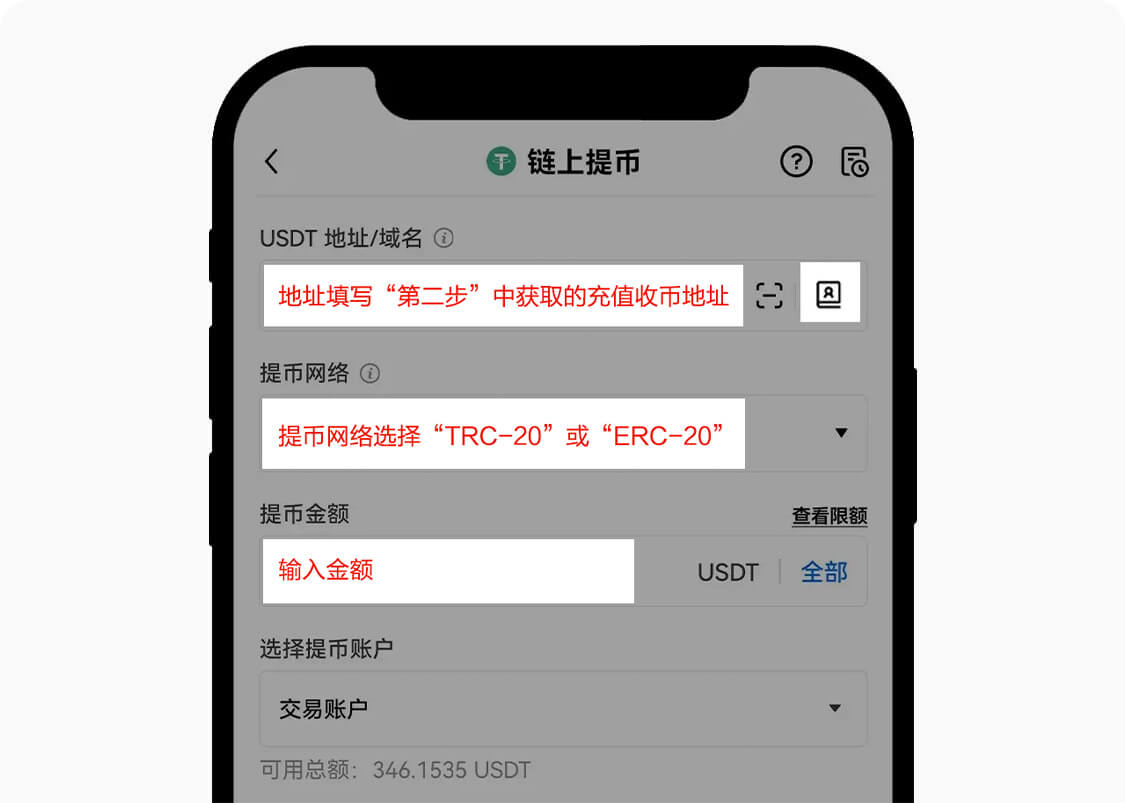 打开App首页-点击【资产】—【充币】—【充入数字货币】,例如选择币种【USDT】。选择充币网络,例如【USDT-OKTC】—【分享充币详情】获取充币地址,再打开其他平台或钱包粘贴地址按要求完成操作完成充币。